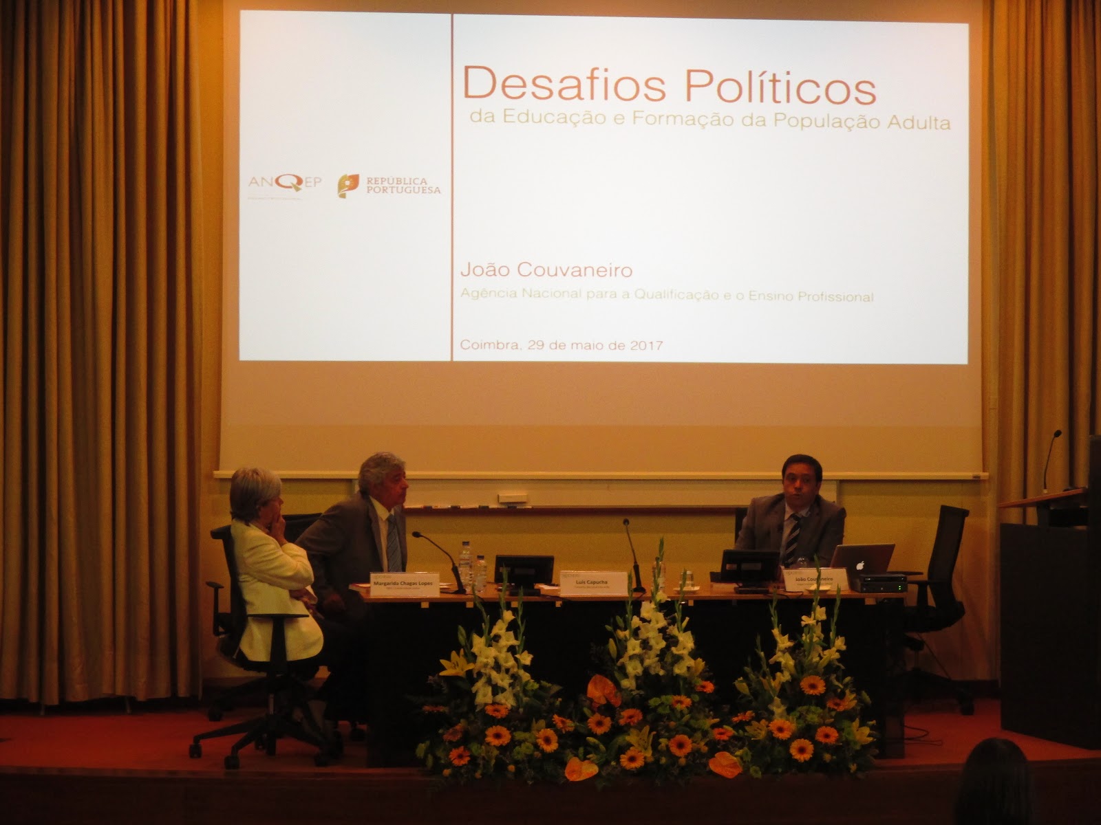 Na parte da tarde, João Couvaneiro começou por apresentar um diagnóstico geral: cerca de 55% dos adultos (entre 25 e 64 anos) não concluíram o ensino secundário; redução acentuada da rede de centros especializados em educação e formação a partir de 2012; recuo da participação de adultos em atividades de educação e formação; quebra (para números praticamente residuais) da atividade dos Centros. À semelhança dos contributos anteriores, também aqui foram registados alguns desafios, particularmente: (1) dar um novo impulso à Educação e Formação de Adultos para melhorar os níveis de qualificação da população portuguesa; (2) assumir a plena integração da educação e formação da população adulta no sistema educativo (a educação de adultos tem de ser convocada, pois ainda não está naturalizada no sistema educativo); (3) assegurar a estabilidade e a resiliência política; (4) melhorar as representações sociais associadas aos processos de educação e formação da população adulta; (5) garantir o financiamento e a sustentabilidade; (6) assegurar a agilidade dos processos de candidatura financeira e o pagamento atempado; (7) reforçar a qualidade dos processos de educação e formação da população adulta; (8) contrariar os baixos níveis de execução que os centros apresentaram nos últimos anos; (9) ampliar a oferta de educação e formação para a população adulta.